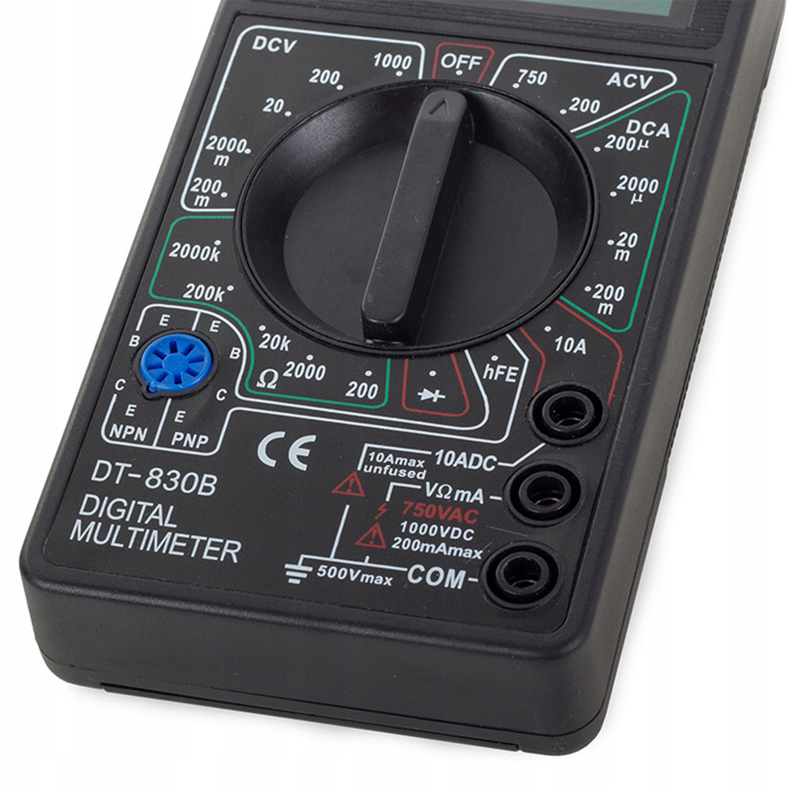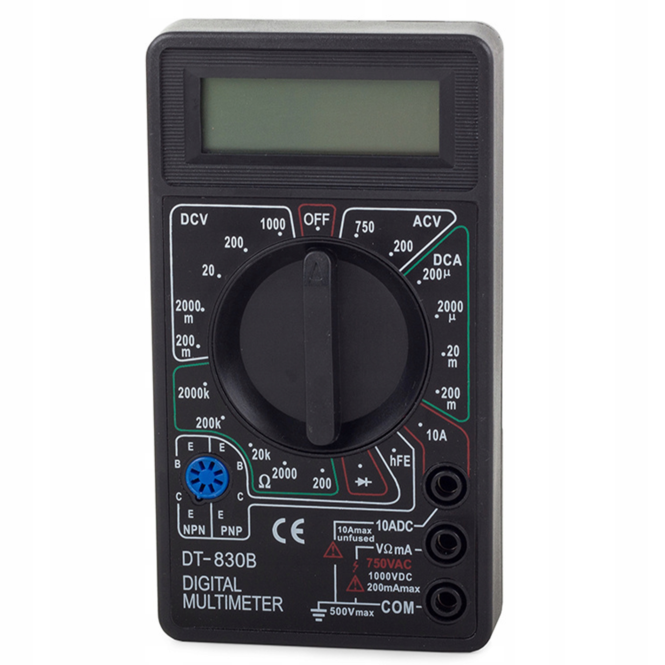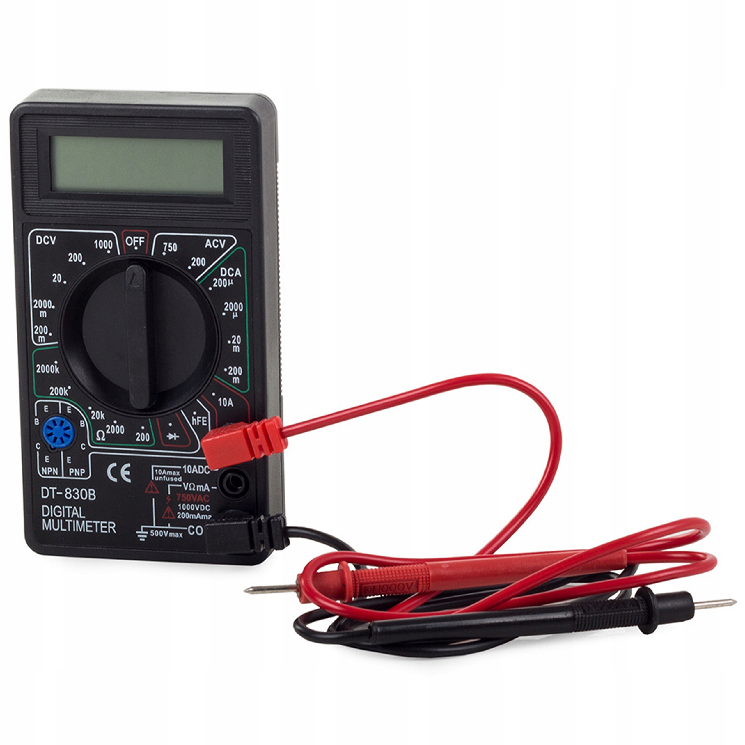 Pomiar:napięcie przemienne AC, napięcie stałe DC, parametry diody, prąd przemienny AC, prąd stały DC, rezystancja, wzmocnienie tranzystora