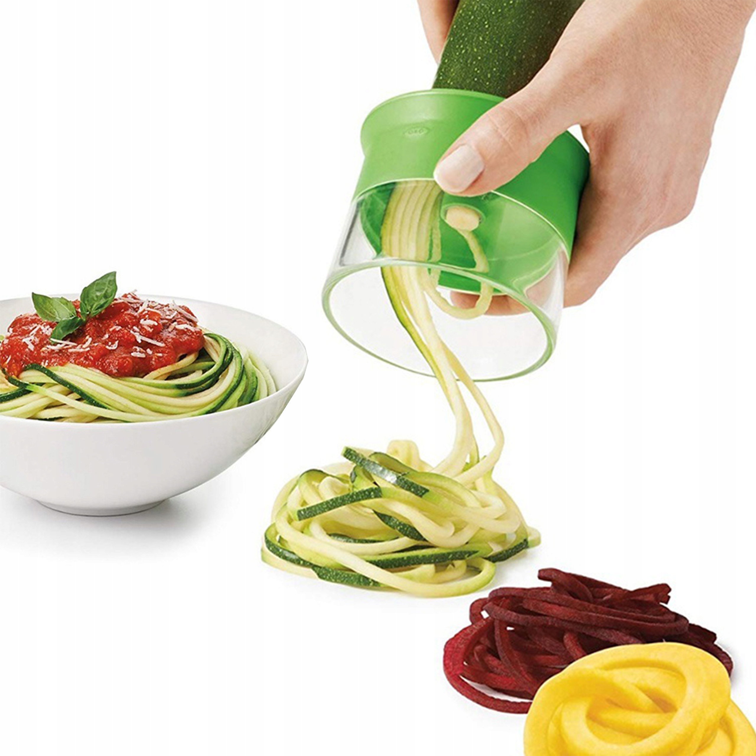 Ręczny siekacz do warzyw to idealne urządzenie do tworzenia makaronu warzywnego, smacznej i zdrowej alternatywy dla tradycyjnego makaronu z mąki. Możemy również tworzyć pyszne spirale do sałatek oraz dodatki do wszelakich dań.