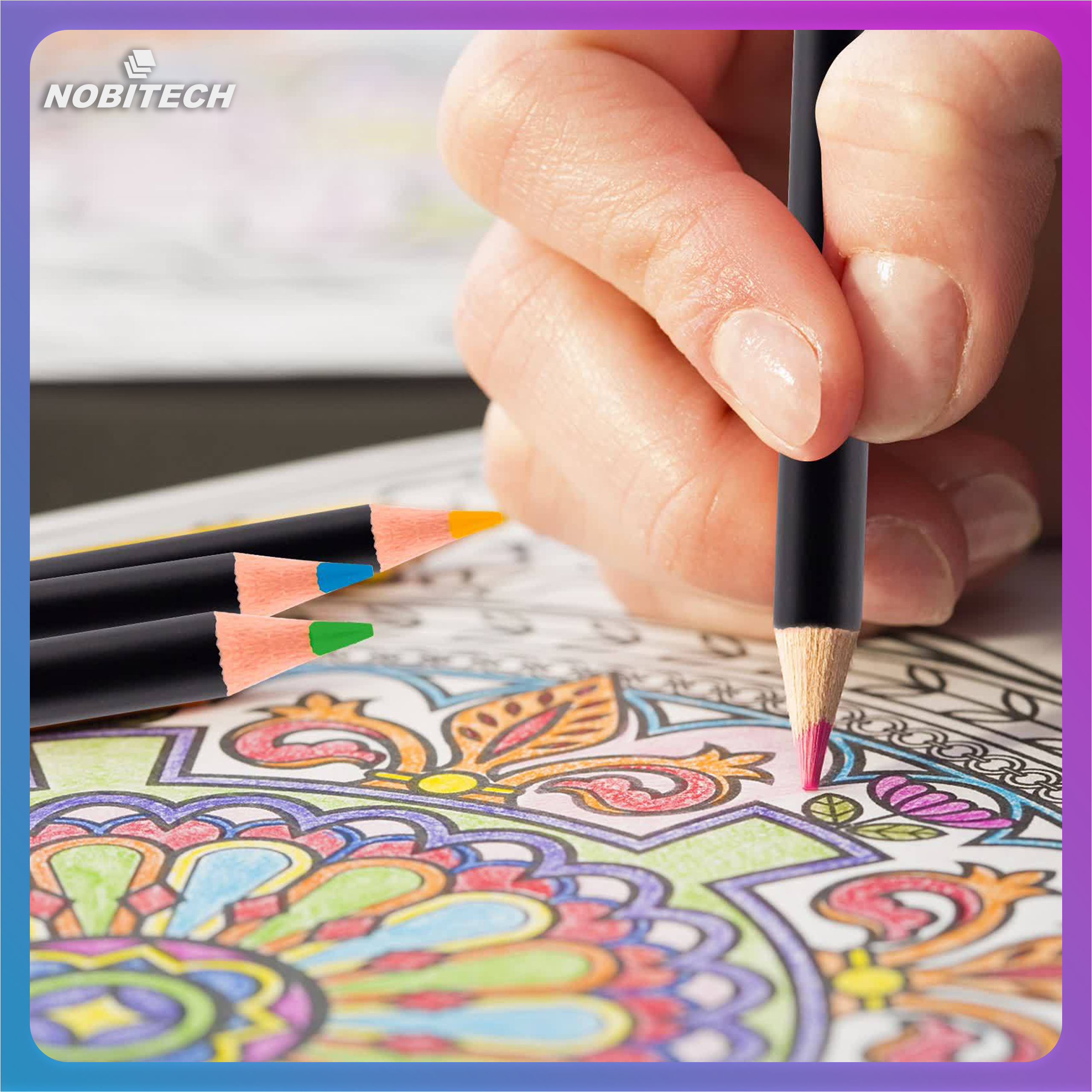 Kredki umieszczone w zestawie są profesjonalnymi akcesoriami o wysokim poziomie jakości, pokryte są czarną, stylową etykietą z kolorowymi końcówkami, które przedstawiają kolor danego przedmiotu. Kredki mają długość 17,5 centymetrów, co pozwala na długie godziny kreatywności.