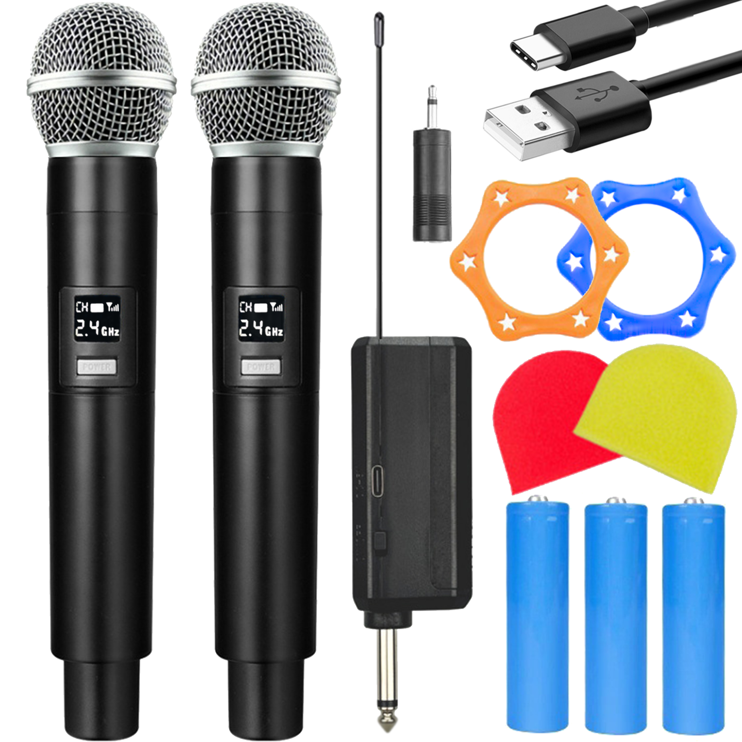 ☑️ Dwa mikrofony dynamiczne DM02 w zestawie z akumulatorami